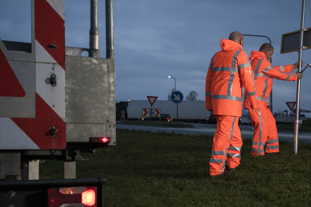 Artikelnummer: 482.23High Visibility Jacke. Reflektierende RWS-Streifen. Druckknöpfe auf den Ärmeln. Kapuze mit Kordel.