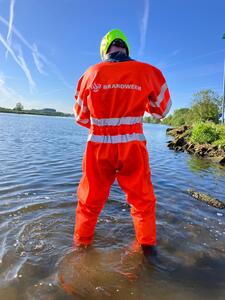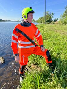 Artikelnummer: 434.13High Visibility coverall met reflecterende striping speciaal bestemd voor grijpredding.
